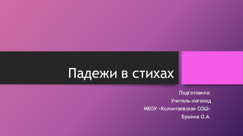 Падежи в стихахПодготовила:Учитель-логопедМБОУ «Колонтаевская СОШ»Бушина О.А.