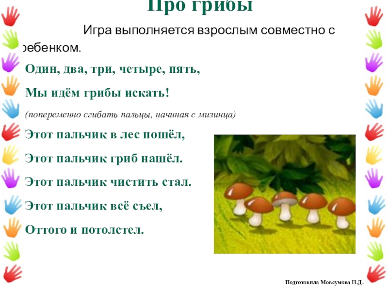 - Постучали, (На этом слове ритмично постукиваете друг об друга основаниями ладоней, не расцепляя пальцы )