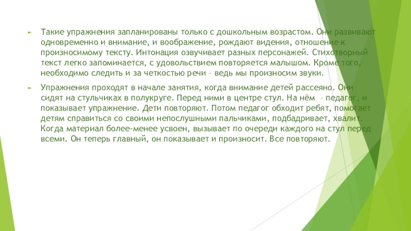Слайд 3Такие упражнения запланированы только с дошкольным возрастом. Они развивают одновременно и