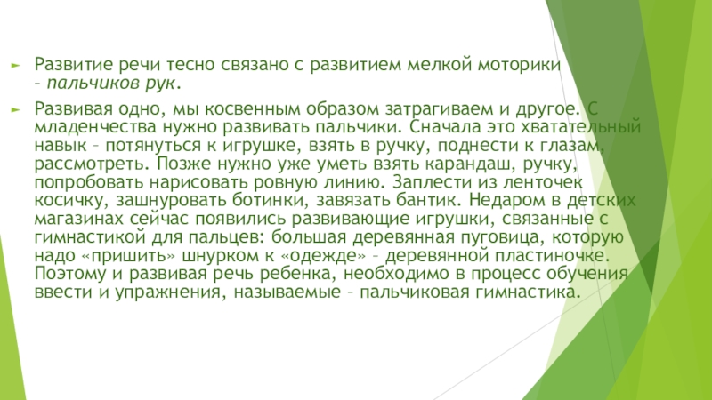 Слайд 2Развитие речи тесно связано с развитием мелкой моторики – пальчиков рук.