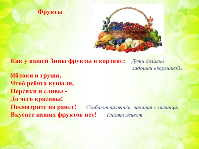 Фрукты Как у нашей Зины фрукты в корзине:  Дети делают