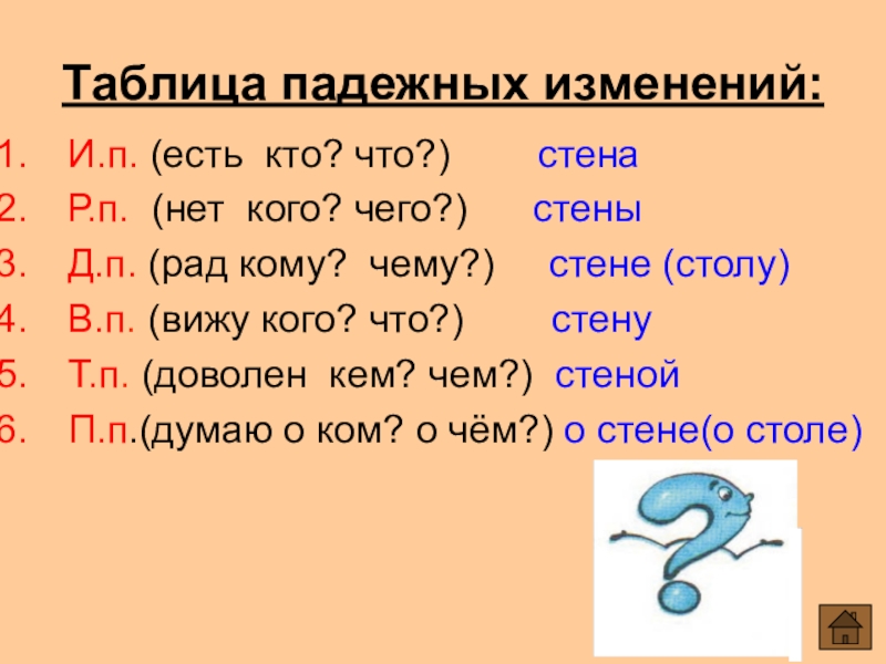 Таблица падежных