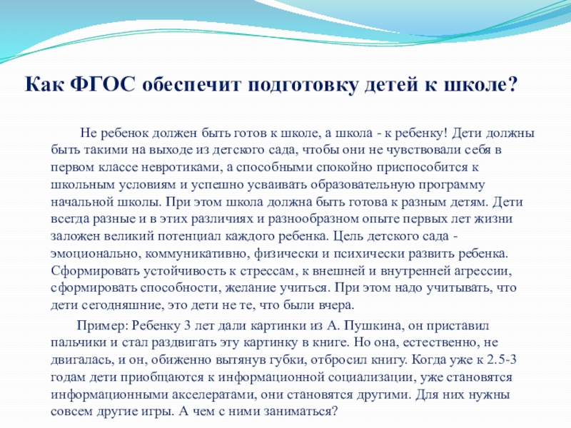 Слайд 14Как ФГОС обеспечит подготовку детей к школе?