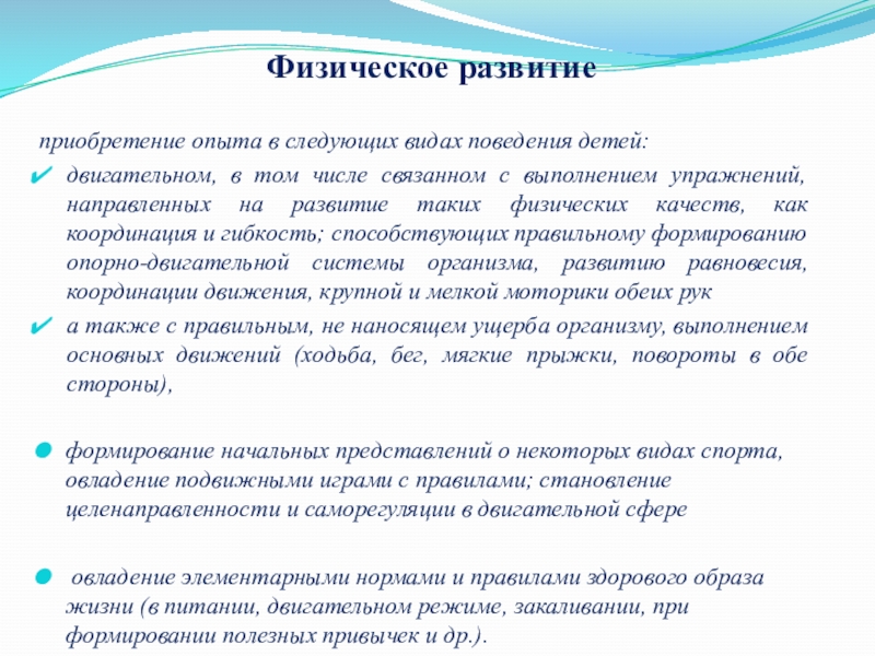 а также с правильным, не наносящем ущерба организму, выполнением основных движений (ходьба, бег, мягкие прыжки, повороты в обе стороны),