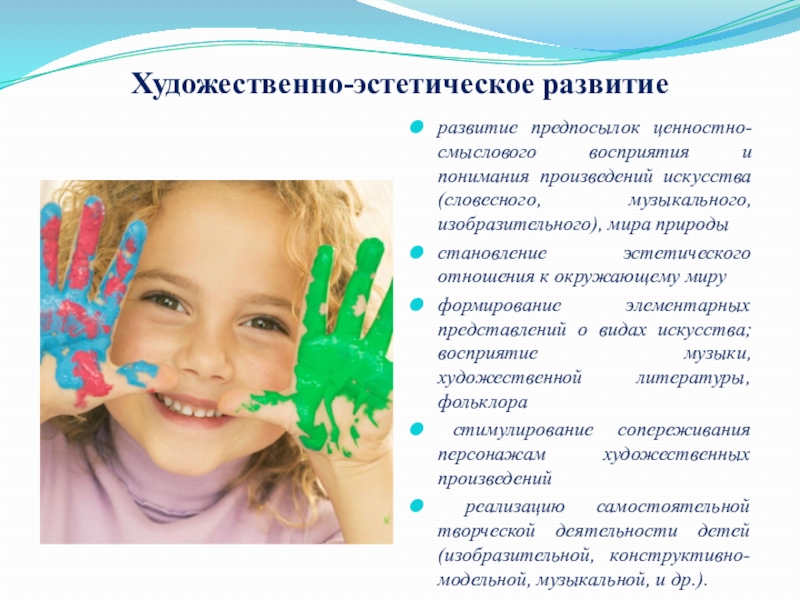 формирование элементарных представлений о видах искусства; восприятие музыки, художественной литературы, фольклора