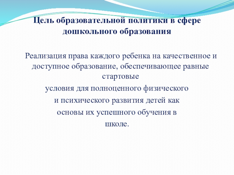 Слайд 3Цель образовательной политики в сфере дошкольного образования