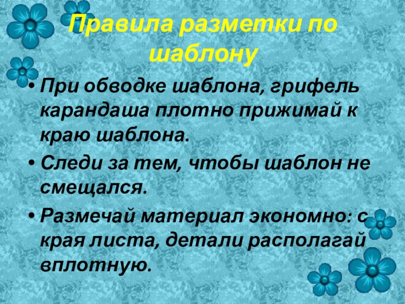 Правила разметки по шаблонуПри обводке шаблона, грифель карандаша плотно прижимай к краю шаблона.Следи за тем, чтобы шаблон
