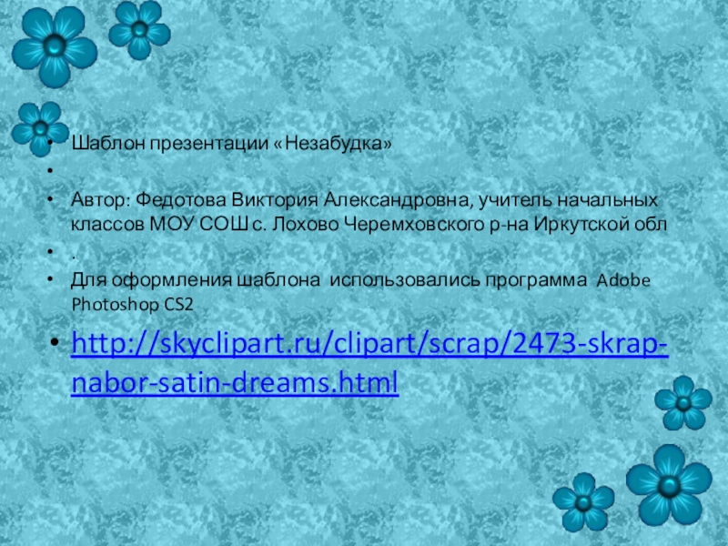 Шаблон презентации «Незабудка» Автор: Федотова Виктория Александровна, учитель начальных классов МОУ СОШ с. Лохово Черемховского р-на Иркутской обл.Для