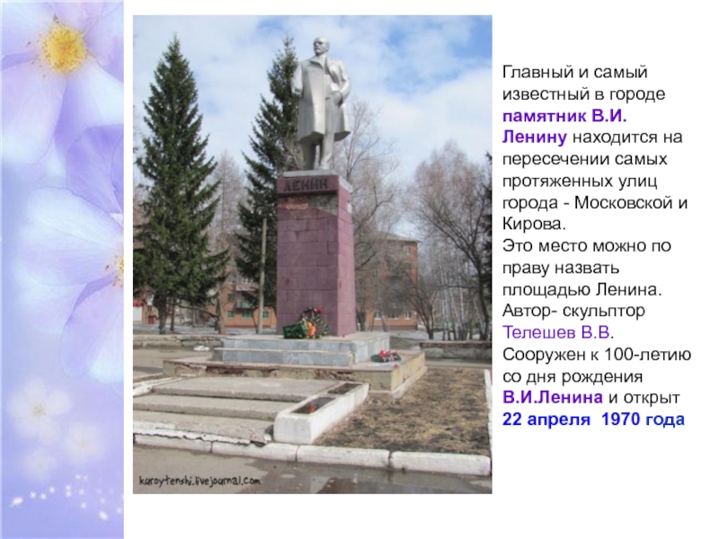 Слайд 6Главный и самый известный в городе памятник В.И.Ленину находится на пересечении
