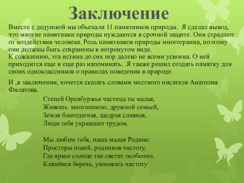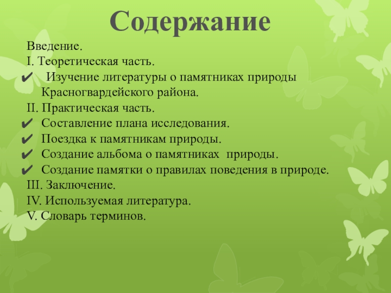 1. Изучить литературу о памятниках природы Красногвардейского района
