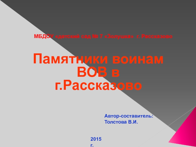 Это сайт презентаций, где можно хранить и обмениваться своими презентациями, докладами, проектами, шаблонами в формате PowerPoint с другими пользователями. Мы помогаем школьникам, студентам, учителям, преподавателям хранить и обмениваться учебными материалами.