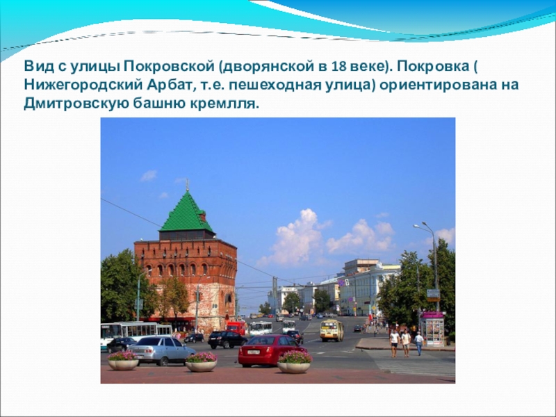 Арбат, т.е. пешеходная улица) ориентирована на Дмитровскую башню кремлля.