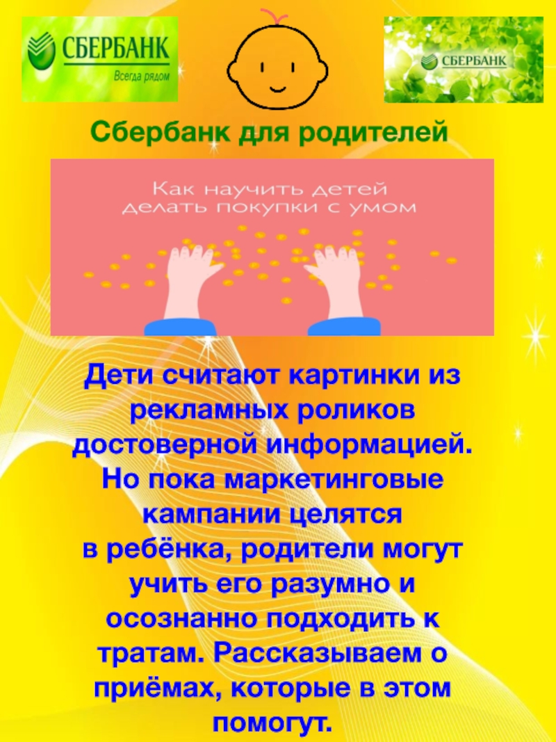 Презентация, доклад на тему Папка-передвижка для родителей доу по финансовой грамотности Сбербанк для родителей
