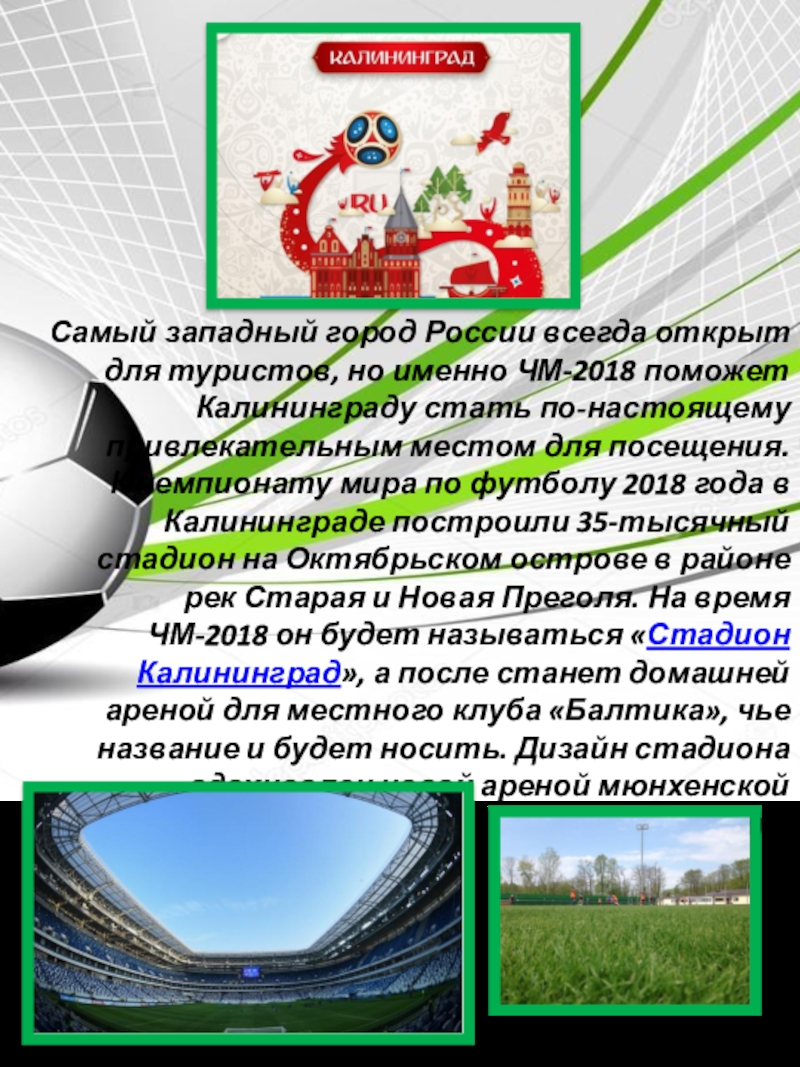 Слайд 7Самый западный город России всегда открыт для туристов, но именно ЧМ-2018