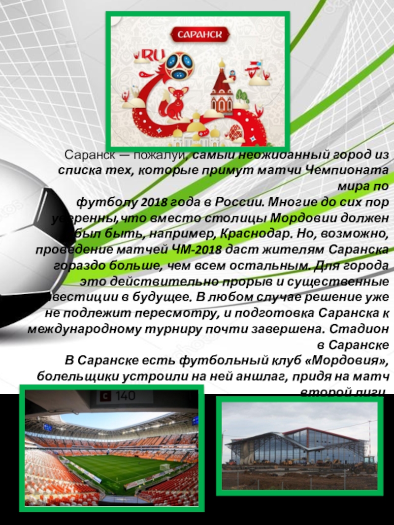 Слайд 14Саранск — пожалуй, самый неожиданный город из списка тех, которые примут