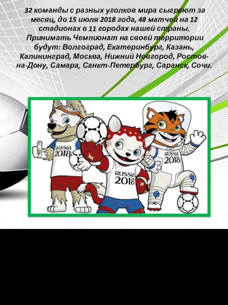 Слайд 3 32 команды с разных уголков мира сыграют за месяц, до
