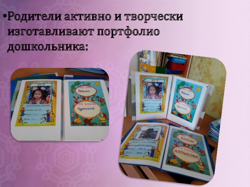 Слайд 10Родители активно и творчески изготавливают портфолио дошкольника: