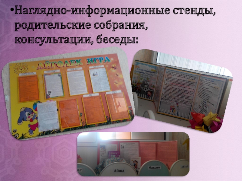 Слайд 6Наглядно-информационные стенды, родительские собрания, консультации, беседы: