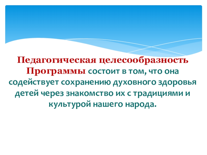 Педагогическая целесообразность Программы состоит в том, что она содействует сохранению духовного