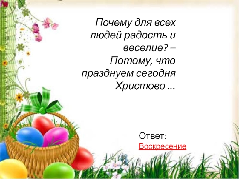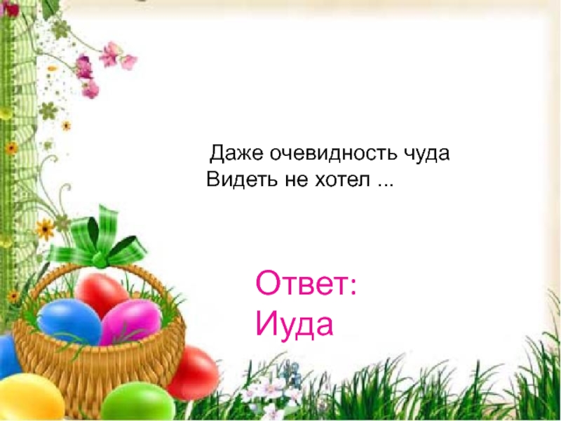 Слайд 13Согласно легенде, праздник Пасхи родилось семь тысяч лет назад, еще во