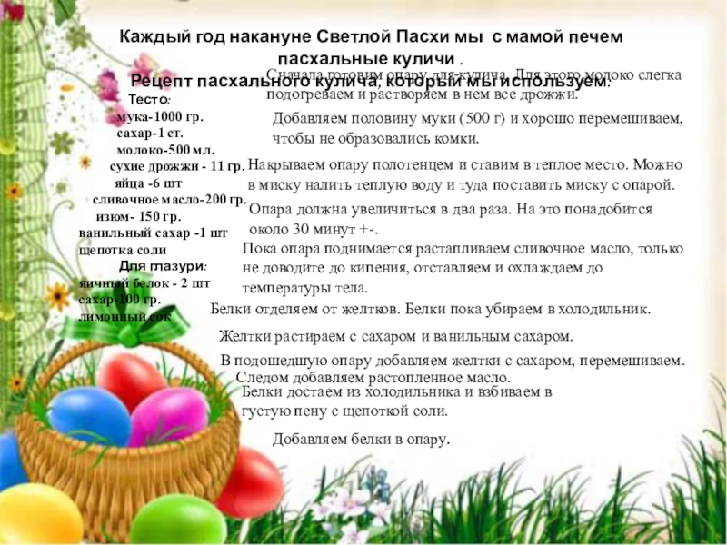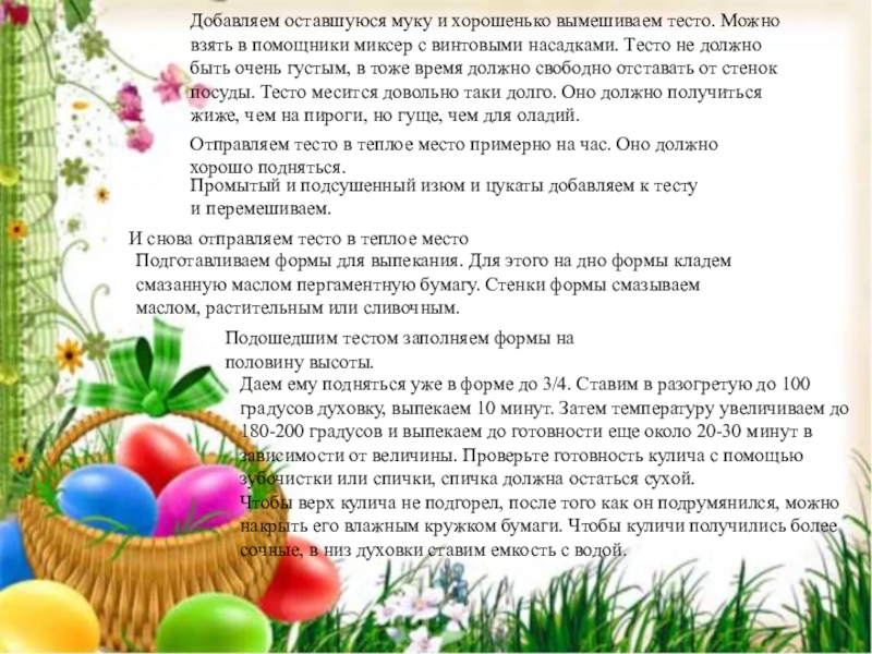 Чтобы верх кулича не подгорел, после того как он подрумянился, можно накрыть его влажным кружком бумаги. Чтобы куличи получились более сочные, в низ духовки ставим емкость с водой.