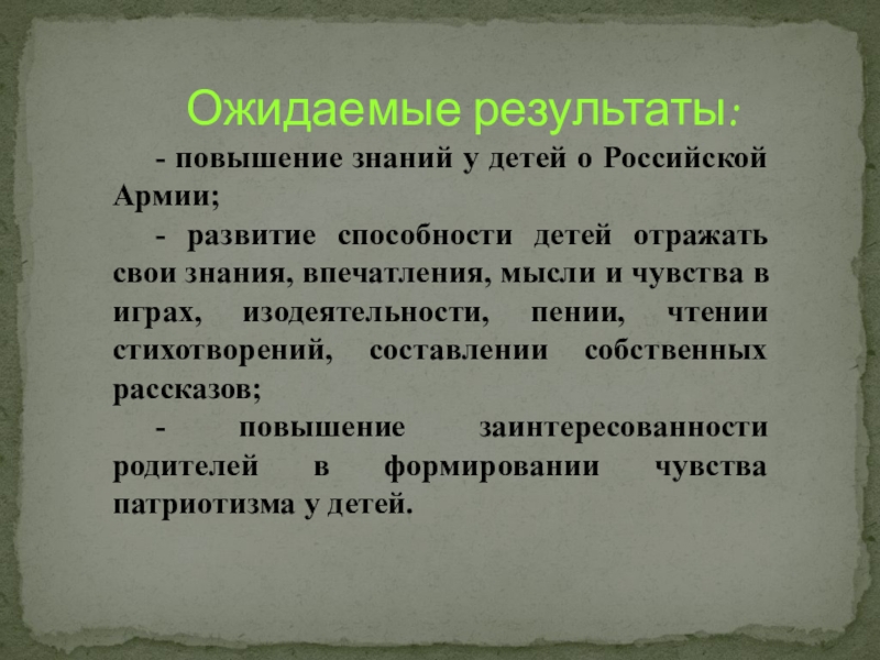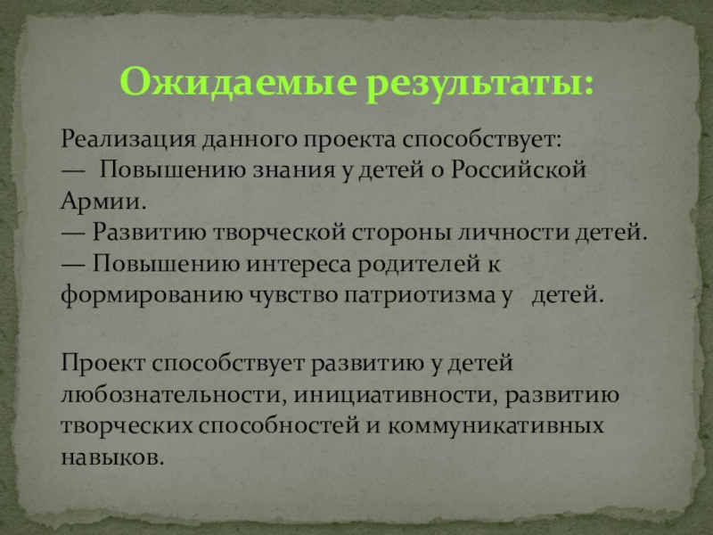 Ожидаемые результаты: