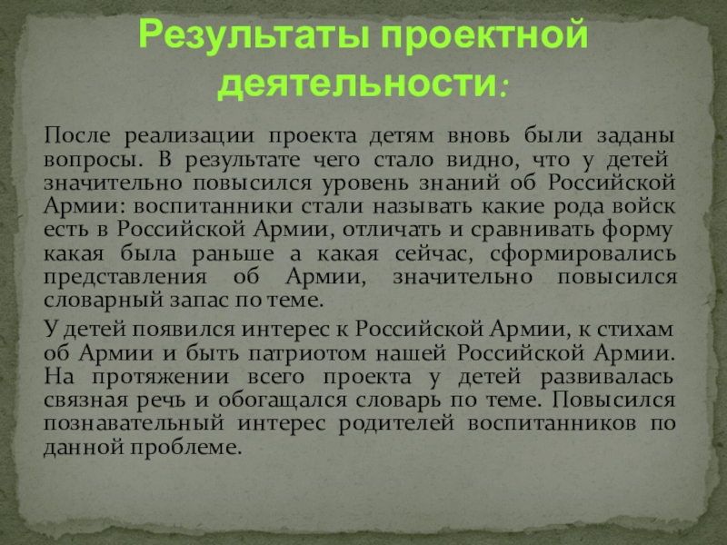 Результаты проектной деятельности: