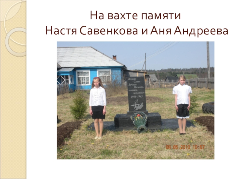 Слайд 11На вахте памяти Настя Савенкова и Аня Андреева