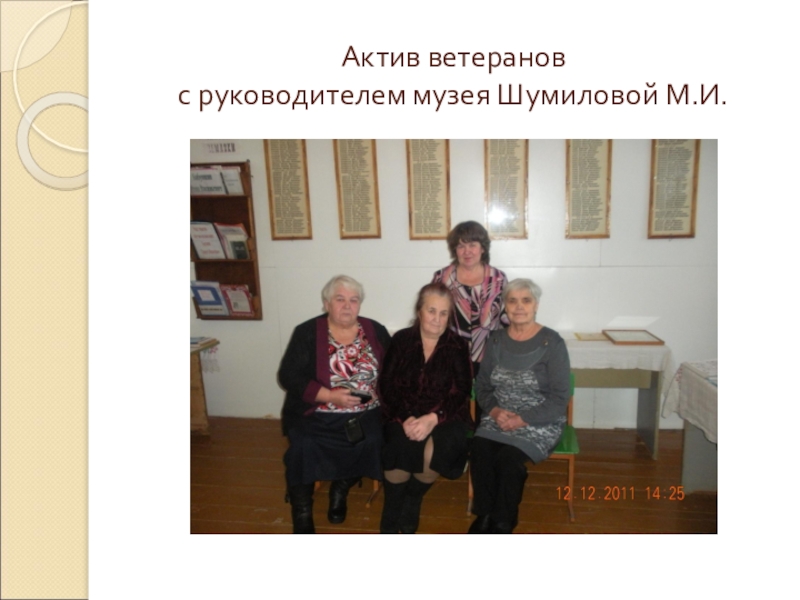 Слайд 10Актив ветеранов с руководителем музея Шумиловой М.И.