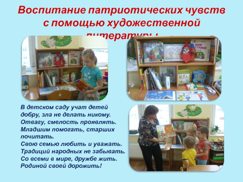 Слайд 15Воспитание патриотических чувств с помощью художественной литературы
