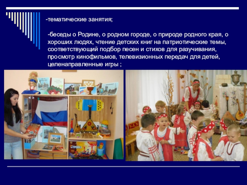 Слайд 13 Содержание патриотического воспитания дошкольников