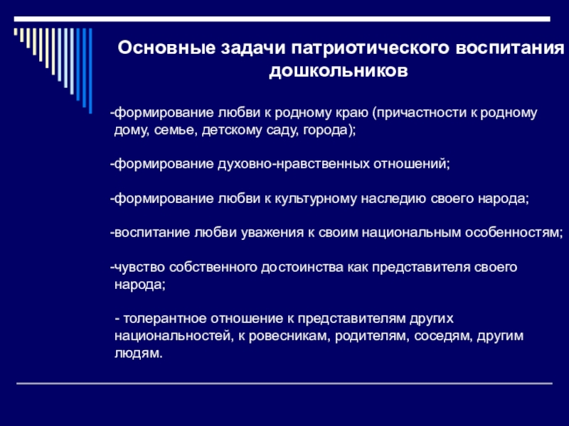 Слайд 8Основные задачи патриотического воспитания дошкольников