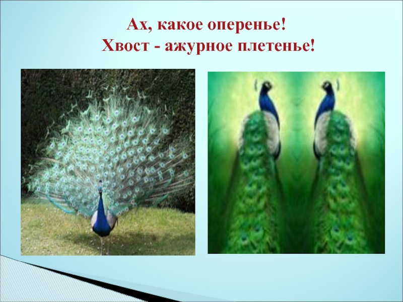 Слайд 5 Ах, какое оперенье! Хвост - ажурное плетенье!