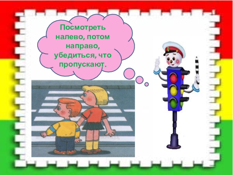 Слайд 11Посмотреть налево, потом направо, убедиться, что пропускают.