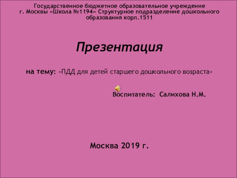 г. Москвы «Школа №1194» Структурное подразделение дошкольного образования корп.1511