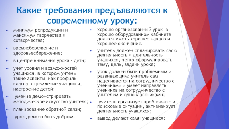 учет уровня и возможностей учащихся, в котором учтены такие аспекты, как профиль класса, стремление учащихся, настроение детей;