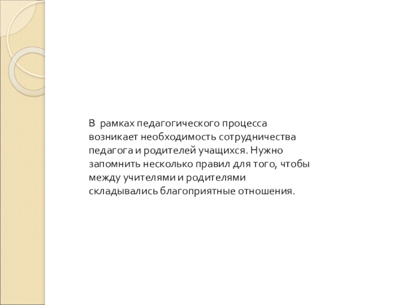 В рамках педагогического процесса возникает необходимость сотрудничества педагога и родителей учащихся.