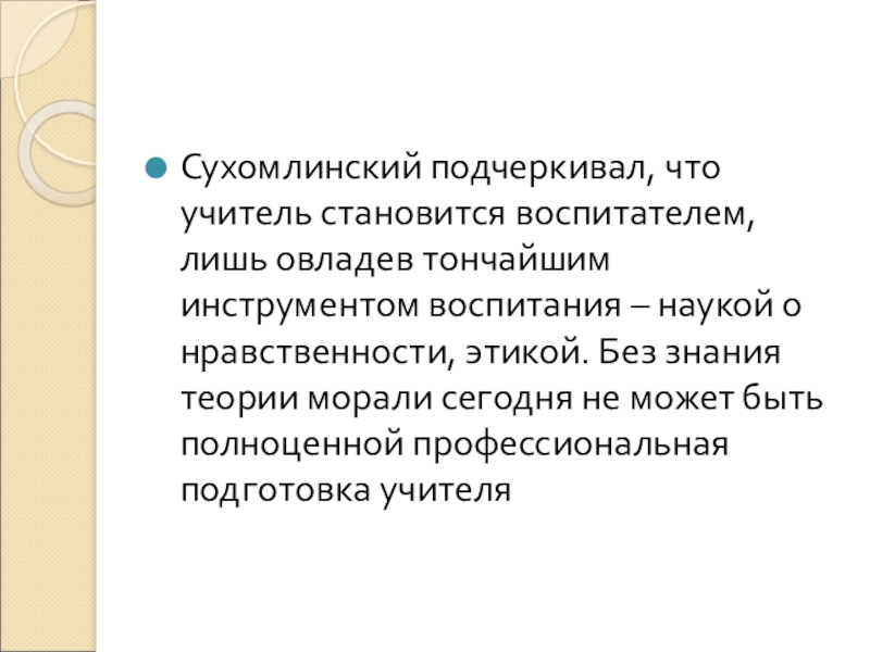 – наукой о нравственности, этикой. Без знания теории морали сегодня не может быть полноценной профессиональная подготовка учителя