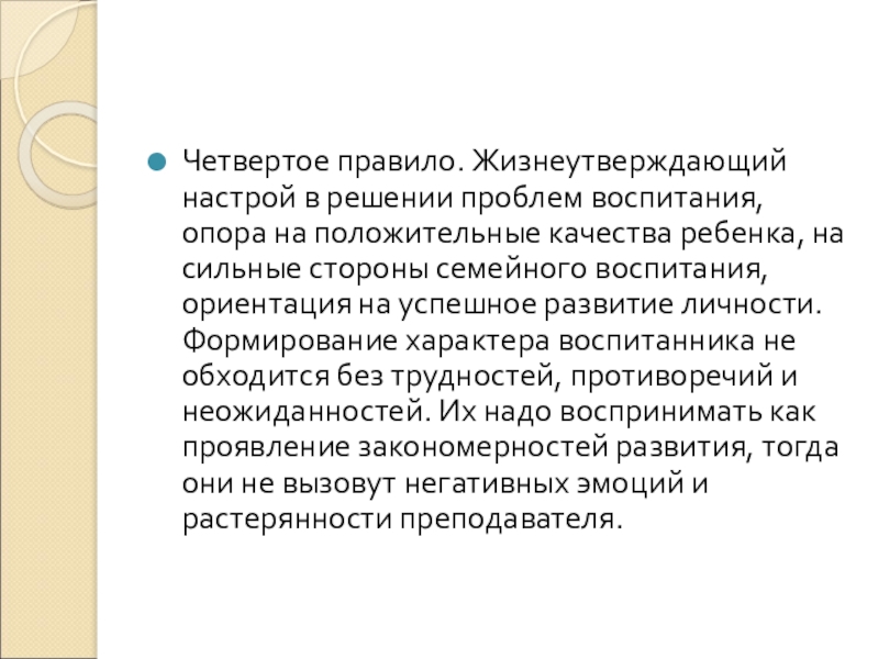 Четвертое правило. Жизнеутверждающий настрой в решении проблем воспитания, опора на положительные