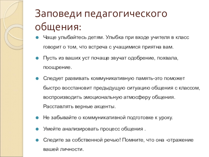 Слайд 7Заповеди педагогического общения: