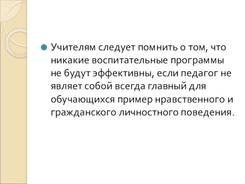 Учителям следует помнить о том, что никакие воспитательные программы не будут