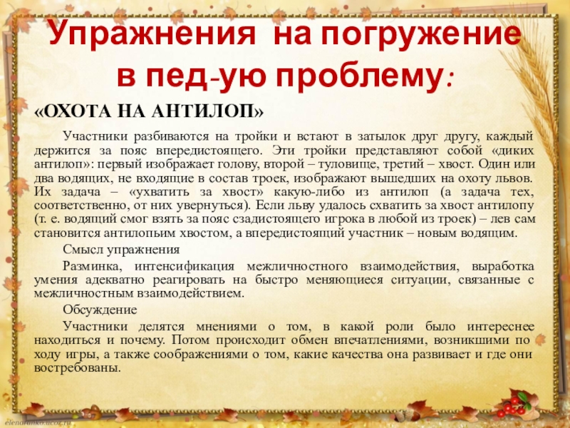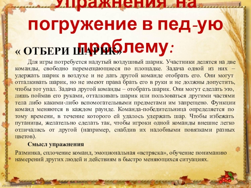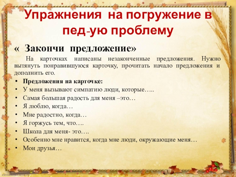 Слайд 11Упражнения на погружение в пед-ую проблему