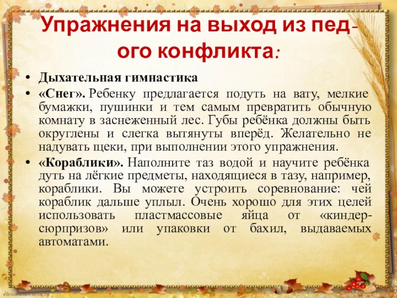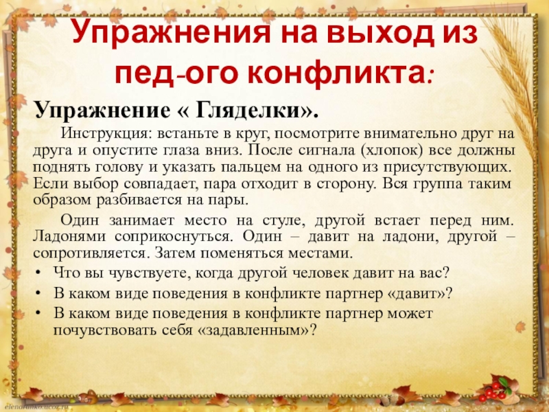Слайд 13Упражнения на выход из пед-ого конфликта:
