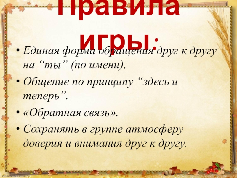 Сохранять в группе атмосферу доверия и внимания друг к другу.