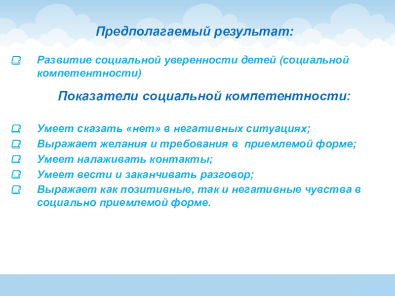 Способствовать формированию навыков разумного поведения; научить адекватно вести себя в разных ситуациях