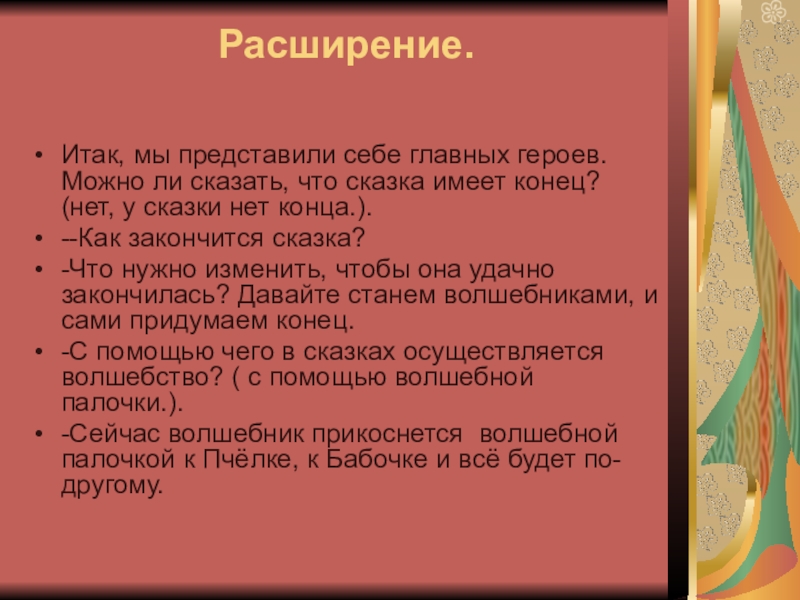 имеет конец? (нет, у сказки нет конца.).