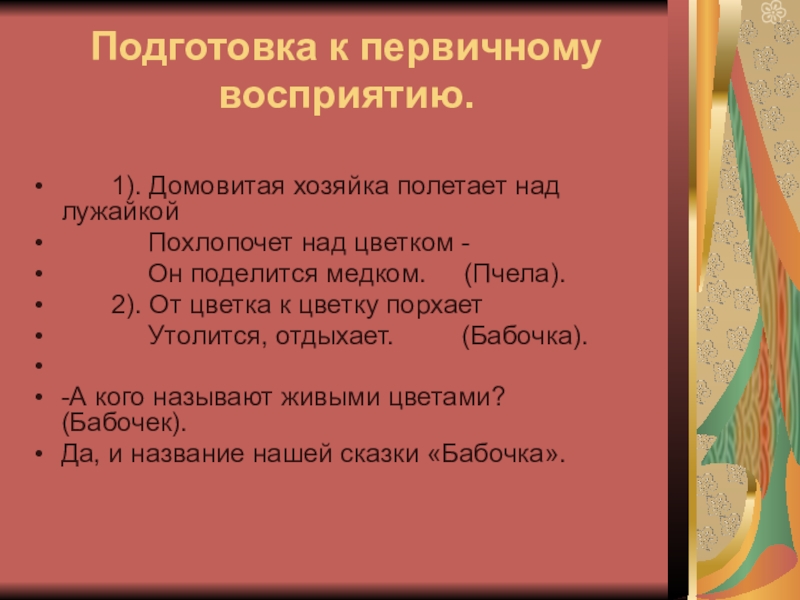 Слайд 7Подготовка к первичному восприятию.
