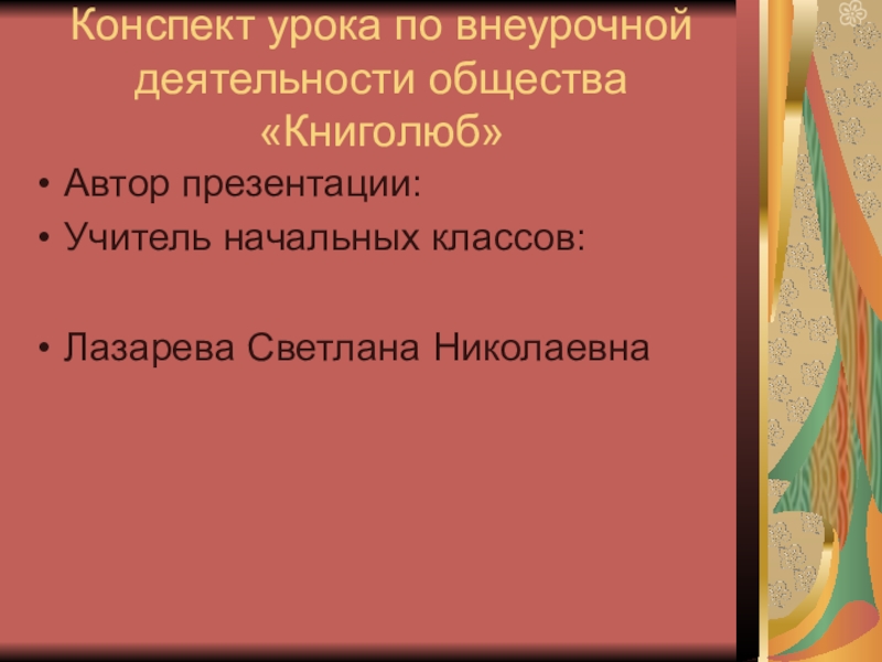Слайд 2Конспект урока по внеурочной деятельности общества «Книголюб»