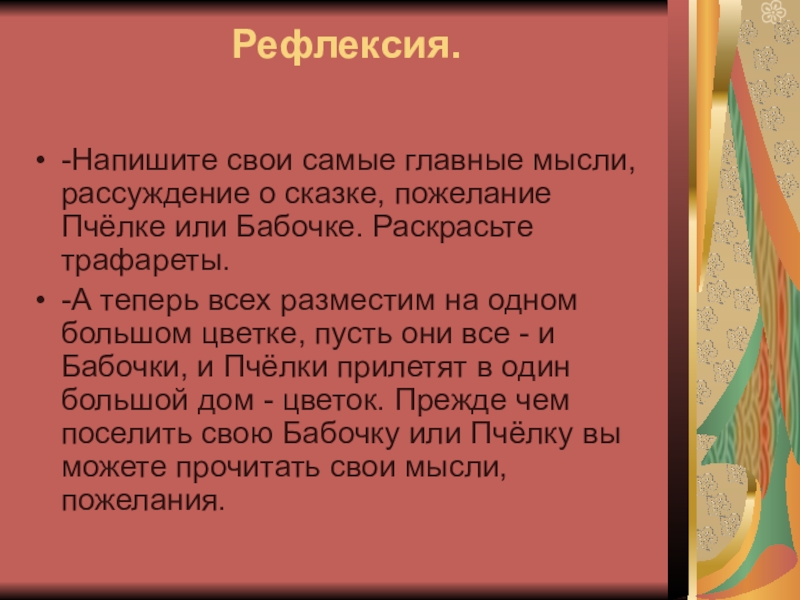 -Напишите свои самые главные мысли, рассуждение о сказке, пожелание Пчёлке