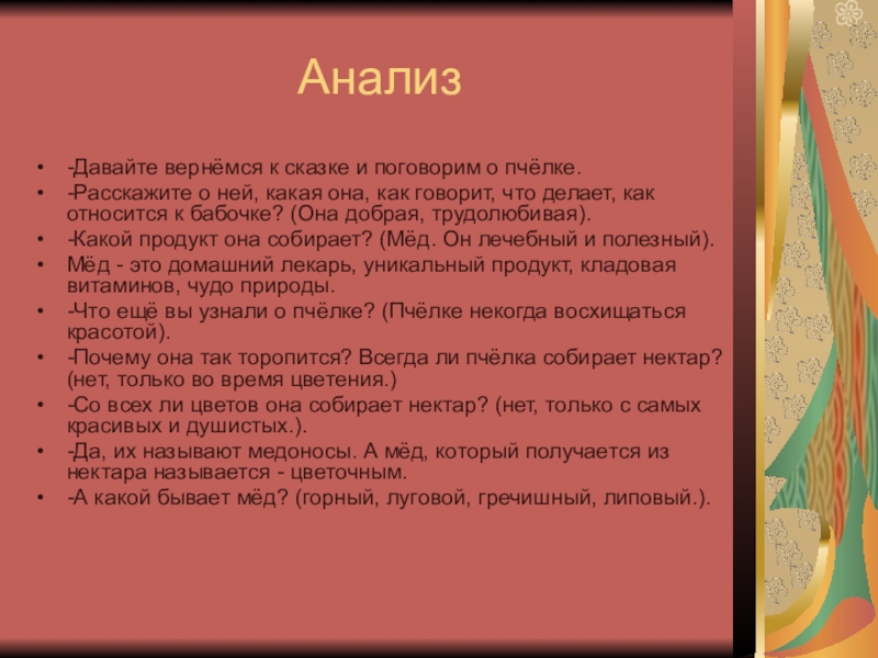 -Давайте вернёмся к сказке и поговорим о пчёлке.